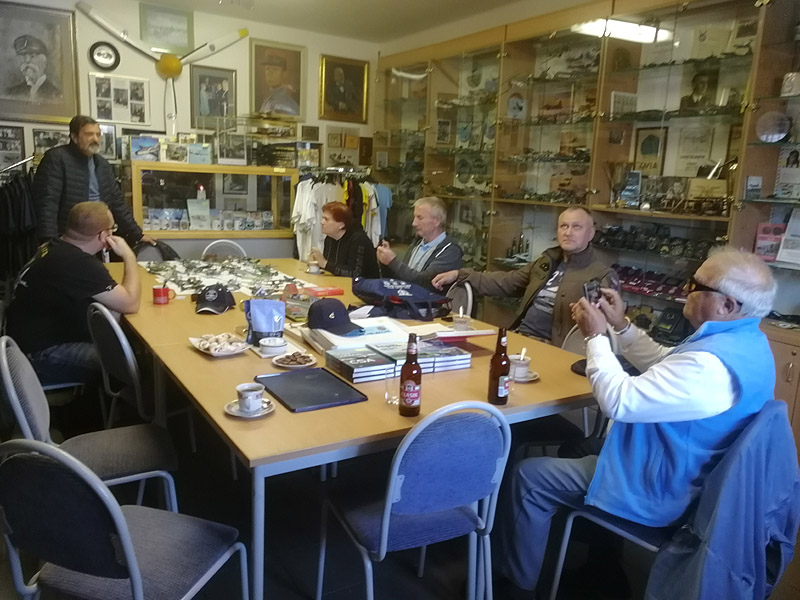 Žatec Na pozvání kolegů z bývalého letiště Žatec se 15. října uskutečnila návštěva jejich Leteckého muzea. Sbírka vystavených artefaktů je rozsáhlá s mnoha exponáty, včetně leteckých trenažérů. Doporučujeme návštěvu v letních měsících. Děkujeme Václavu Vaškovi za vřelé přijetí.
