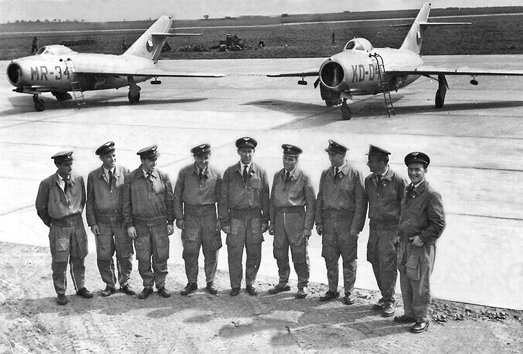 Jarda Fryščák, palubní radista Emil Molnár, letovod Standa