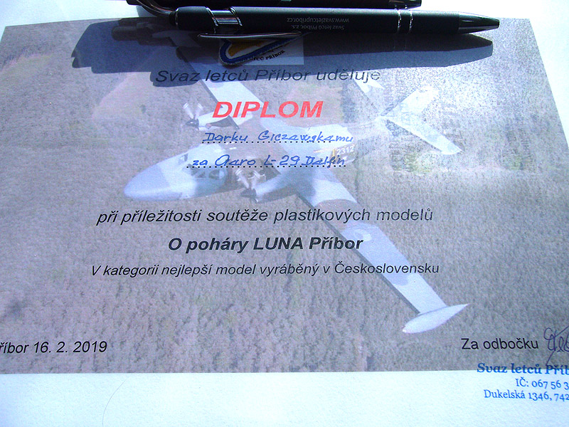 O poháry Luna Příbor V prostorách SVČ Luna Příbor se 16. února konala soutěž plastikových modelů O Poháry Luna Příbor. Samostatnou kategorií byla vypsána soutěž o nejlepší letoun vyráběný naším průmyslem. Cenu získal Darek Giczewski (Polsko) za letoun Aero L-29 Delfín.