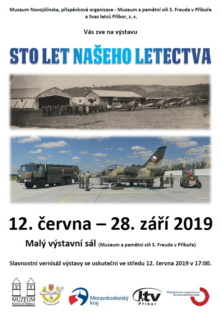 Výstava Sto let našeho letectva 12. června byla v muzeu Novojičínska v Příboře vernisáž výstavy „Sto let našeho letectva“. Výstava je společnou akcí Muzea Novojičínska - Příbor a Svazu letců Příbor z. s. Je rozdělena do dvou částí. Jednou částí je panelová výstava mapující celou historii našeho letectva od r. 1918. Druhou částí jsou výstavní exponáty vztahující se k letectvu. Musíme poděkovat Klubu plastikového modelářství APOLO Kopřivnice, kteří svými modely obsáhli celé stoleté období.