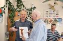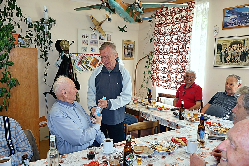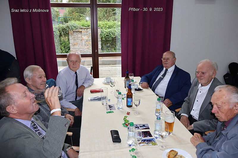 Setkání pluků Svaz letců Příbor zorganizoval na den 30. září setkání dvou bývalých leteckých pluků - 8. stíhacího pluku a 1. dopravně výsadkového leteckého pluku, dislokovaných v minulosti na letišti Mošnov. Sešlo se nás 120, jen o 10 méně než minulý rok. Možná by nás bylo více, ale na Slovensku byly tento den volby. Program byl tradiční, přivítání, položení kytice u památníku letců, oběd, další občerstvení a hlavně volná zábava. Bar obětavě obsluhoval Česťa Šedivý. Tento rok jsme měli vzácnou návštěvu. Pozvání přijal kolega Václav Vašek. Došlo tak k setkání dvou leteckých legend V. Vaška a Pepíka Szobiho, který tento rok oslavil 90 let. Snad to nebylo poslední setkání.