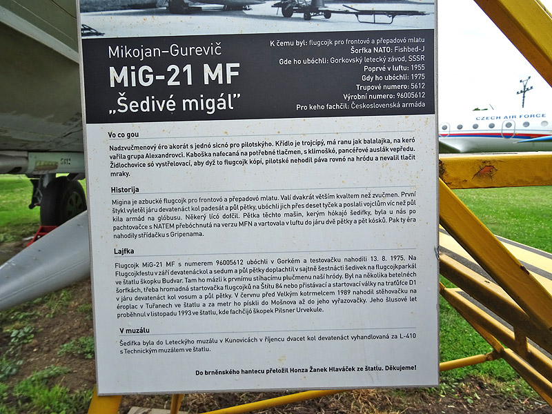 Letecké muzeum Kunovice Společné setkání s kolegy ze Slovenského Svazu letců a parašutistů Trenčín se tentokrát uskutečnilo 12. června v Leteckém muzeu Kunovice. Celým areálem nás provázel místní průvodce. Kvalifikovaný výklad ohledně historie exponátů se spoustou dotazů byl všemi kvitován velmi kladně. Tím se časově protáhla i celá prohlídka a nebýt nevlídného počasí, byla by asi ještě delší. Některými informacemi naopak zase naši kolegové obohatili průvodce. Děkujeme vedení muzea i průvodci za zážitek a všem doporučujeme tento způsob prohlídky.