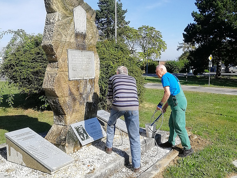 Očista pomníků V září jsme na požádání letiště Mošnov provedli očistu pomníků před terminálem letiště. V prostoru jsou památníky bratrů Žurovců, připomínka přistání 1. Smíšené letecké divize v SSSR na našem území v r. 1945, památník příslušníků leteckých útvarů zahynulých za války a při výkonu služby.