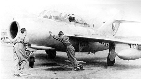 Plný očekávání jsem vystoupil z vlaku ve stanici Straky a kráčel na letiště Mladá. Co mne čeká? Jaký tam bude kolektiv? Jací velitelé? To všechno se mi honilo po cestě hlavou. U vstupní brány jsem byl nasměrován do prostoru, kde nás již čekali naši velitelé letek a rojů. Na letišti Mladá byly dva pluky: 17. letecký pluk PVO a dopravně výsadkový průzkumný pluk, kterému velel pplk. Racko Emil. Našemu pluku velel mjr. Jaduť, který byl brzy odvolán na štáb divize do Žatce a k nám přišel náš starý známý z přeškolovacího střediska mjr. Dolíhal. My jsme znali jeho a on znal nás. Byl jsem zařazen k první letce, které velel kpt. Racko Jozef, bratr Emila od vedlejšího pluku. Jožo nás vzal zkrátka a tak jsme s létáním především jeho zásluhou šli rychle dopředu. Prvně jsme ale začali létat na Aradech a C-11. Právě na C-11 došlo ke katastrofě v květnu 1955. V letounu seděl zástupce 3. letky Karel Bělohradský a ve předu Pepík Novotný. U Mladé Boleslavi vlétli do bouřkového mraku, nezvládli pilotáž a vrazili do země. 1. letka pod vedením Jožo Racka pokračovala v intenzívním výcviku. Zástupcem byl kpt. Milan Růžička, ZVP Václav Šmejkal, velitel 1. roje Karel Zaoral, 2. roje Bohouš Úlehla a 3. roje Tonda Kubeš. K tomuto roji jsem byl zařazen i já jako starší pilot, moje číslo byl Jirka Štiller. Létali jsme i o sobotách a rychle jsme se vzdalovali v leteckém výcviku zbylým dvěma letkám. Když jsem měl nalétáno na MiG-15 30 hodin, odstartoval jsem ke svému prvnímu letu z hotovosti na ochranu státních hranic. Potom jsem se už střídal v držení ostré hotovosti na letišti Mladá. Na podzim roku 1955 došlo k významné události. Stěhovali jsme se na letiště Mimoň, kde jsme se střídali s dopravním plukem Aero C-3, tzv. "Síblů". Mezi oběma letišti jezdily autobusy, vše řídili ubytovací dispečeři, takže ještě než jsem poznal letiště v Mimoň, už jsem měl přidělen byt. Oženil jsem se totiž 24. září 1954 a kdo byl ženatý, dostal byt, který uvolňovali Sieblaři. Mimoň bylo překrásné letiště, obklopené ze všech stran lesy, s celkově krásnou přírodou, vyznačující se zalesněnými kopečky s rybníky a jezírky. Všemu vévodilo 15 kilometrů vzdálené Máchovo jezero a na druhé straně dominanta Ještědu s výškou 1015 metrů. Blízko sestupu byla hora Ralsko vysoká 696 metrů, kousek za naším sídlištěm. Všichni z letiště jsme bydleli na tomto sídlišti na severní straně Mimoně, kde byla zároveň škola, obchody a samozřejmě i hospoda "U vrtule", která byla svědkem našich "poletových rozborů". Každý z nás měl plán nalétat za rok 100 hodin. Létali jsme i do hotovostí na letiště Žatec a Dobřany u Plzně. Hotovost spočívala v tom, že jsme se v pondělí ubytovali na svobodárně a hned od 7:00 hodin drželi hotovost v dřevěném baráku na okraji letiště od východu do západu slunce po celý týden. Dost jsme si zalétali a tak jsme na tuto službu chodili celkem rádi. Většinou to byly lety na západní hranice, kde jsme byli voděni naváděcím stanovištěm podél hranic. Na jedné straně my, na druhé straně létal "američan" na F-86, to je letoun přibližných vlastností MIG-15. Lety byly okolo 12000 metrů a korzovali jsme od hranic NDR po Rakousko. Pod námi byla většinou oblačnost, takže jsme byli odkázáni čistě na pokyny letovoda z naváděcího stanoviště. Když nám docházelo palivo - asi po hodině letu, Američan zakýval letounem na pozdrav, já mu zakýval rovněž a odpoutali se každý na svou stranu. Bylo to přátelské gesto, o kterém jsem nikde nemluvil.